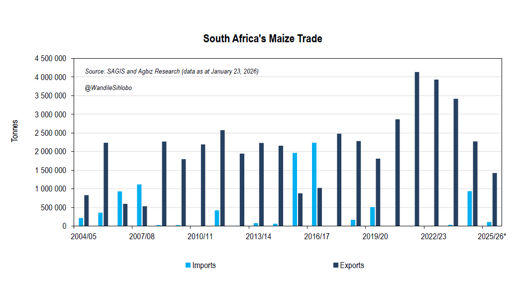 The current marketing year only ends in April 2026. We expect more robust export activity this quarter, driven by stronger demand in the Southern African region. To meet the expected exports, South Africa must export 1 million tonnes of maize within the next three months.